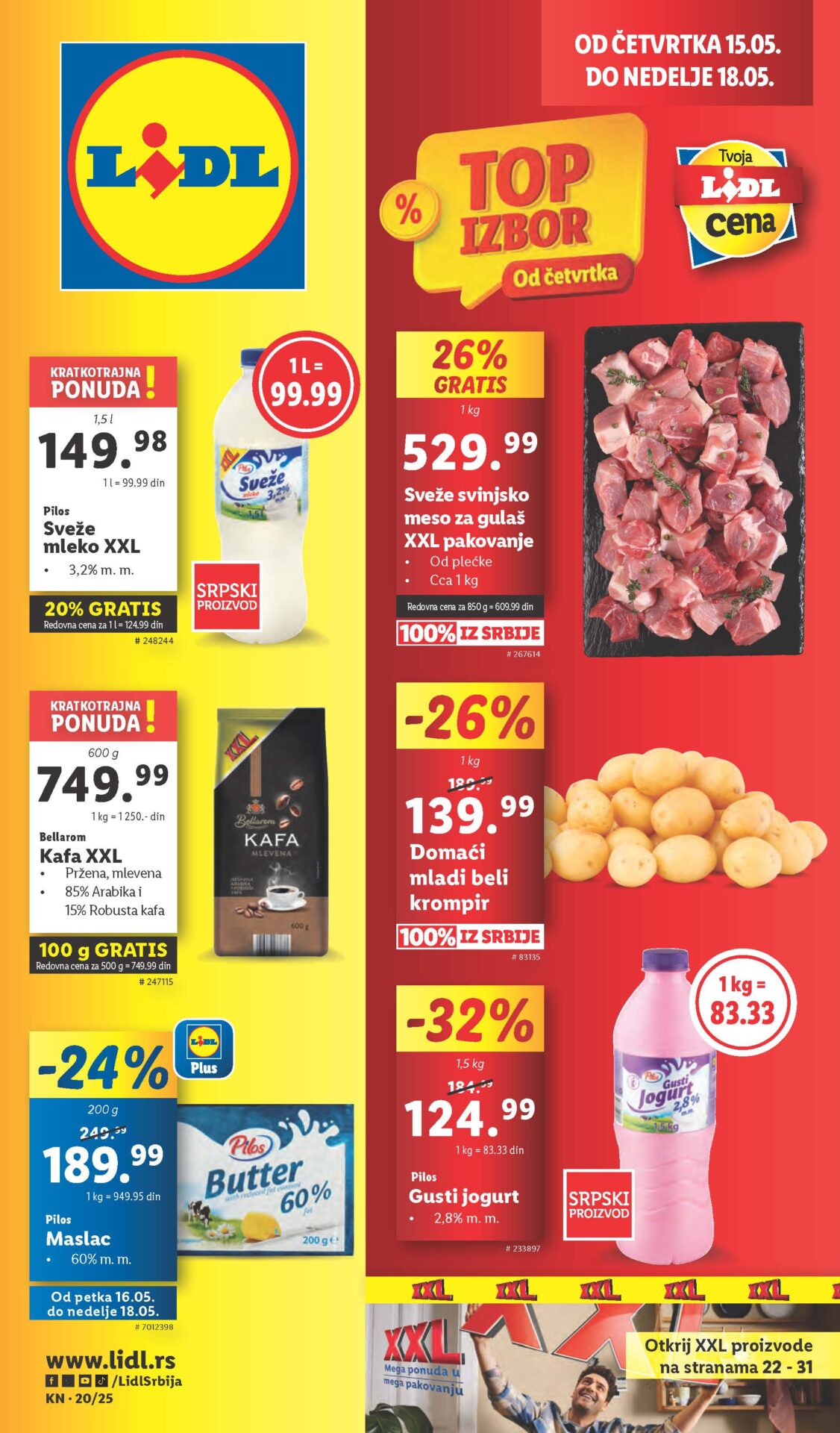 Dobrodošli u svet neverovatnih ponuda i neodoljivih akcija! Vaš omiljeni Lidl katalog, koji važi od 15.5. do 21.5. 2025. godine, donosi vam pravo bogatstvo svežih i kvalitetnih proizvoda po cenama koje će vas oduševiti. Pripremite se da uživate u širokom asortimanu proizvoda koji će zadovoljiti sve vaše potrebe i želje. Ovaj katalog nije samo spisak proizvoda; to je poziv da iskusite vrhunski kvalitet i uštedite novac, a sve to uz osmeh i zadovoljstvo.